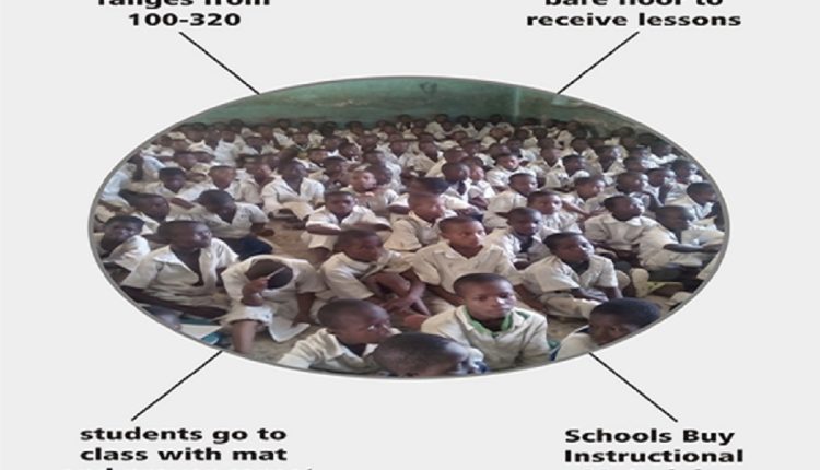 Across public primary schools in the 16 local governments areas visited pupils sit on bare floor in congested classes, making teaching and learning difficult for both the teachers and children.