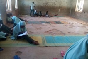 The problem of lack of sitting materials which lingered for years in both primary and junior secondary schools (upper basic), forced some of the schools to device means of coming to the aid of their pupils by buying rubber mats and spread in classes. In some other cases the students devised their own ways by going to school with prayer carpets.