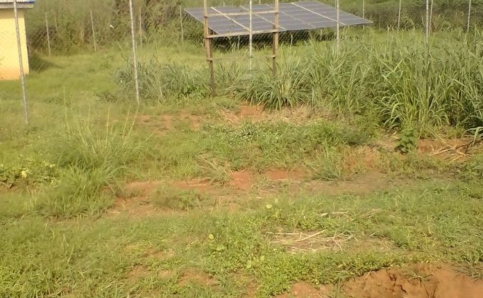 On the grid were 30 photo-voltaic panels lined facing the sun, inclined at about angle 40 degrees. The villager said the monitoring group complained the panels were not enough. Worse, the entire structure was mounted on the bare ground, just a portion covered with a thin layer of cement. The switch room was locked up when the National Daily visited. So there was no way to know the number and calibre of the batteries and inverters for storing the electrical energy. Spark said the batteries were 195 amp.